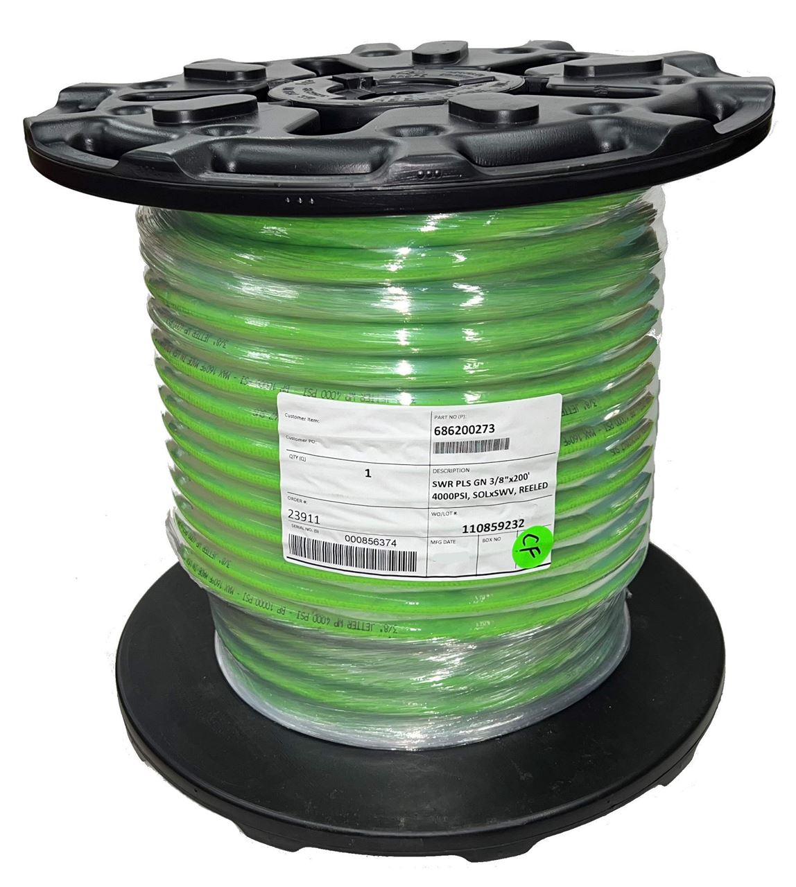 Propulse Green 3/8” X 200’ Lateral Line and Drain Cleaner Sewer Hose. Ideal for consumer and commercial sewer jetters with operating pressures of 4,000 PSI or less. Jetter Clean hoses offer optimum flexibility and lightweight construction. NOT FOR HOT WATER OR STEAM.